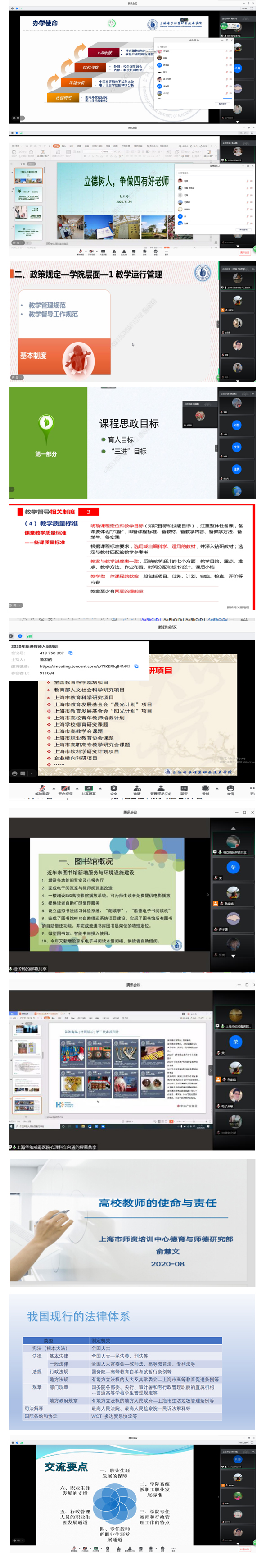 此次培训还邀请了上海市师资培训中心德育与师德研究部副主任俞慧文、我校法律顾问司雷和华佑医疗集团-上海医院心理科主管车向通,分别为大家做了“教师的责任和使命”“法治意识与法制教育”和“毒品预防与教育”专题讲座。培训课程最后,教师工作部部长、人事处处长宋长海作了“职业院校教职工职业生涯发展”的专题培训,为新进教职工指引了职业发展方向。