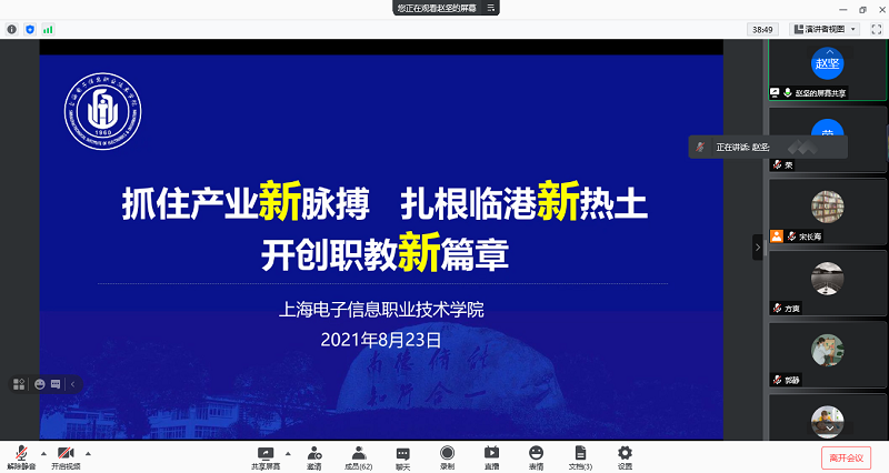 培训班首日,学校党委副书记、校长赵坚作开篇专题报告《抓住产业新脉搏,扎根临港新热土,开创职教新篇章》。赵校长详细介绍了学校现有基础、发展目标和建设路径。他强调,我校地处临港新片区,是一所办学历史悠久,办学特色鲜明,办学实力雄厚的高职院校,学校“十四五”期间的工作主线就是创建本科层次的职业技术大学。他勉励新进教职工努力成为锚定职业本科教育内涵建设和发展的贡献者。党委副书记、纪委书记毛玉婷从学习党史的必要性到师德师风建设的紧迫性,作题为《学党史、明责任、强师德、育新人》报告,详细解读了“新时代高校教师职业行为十项准则”、高校教师师德“七条红线”和教育部“十禁令”。